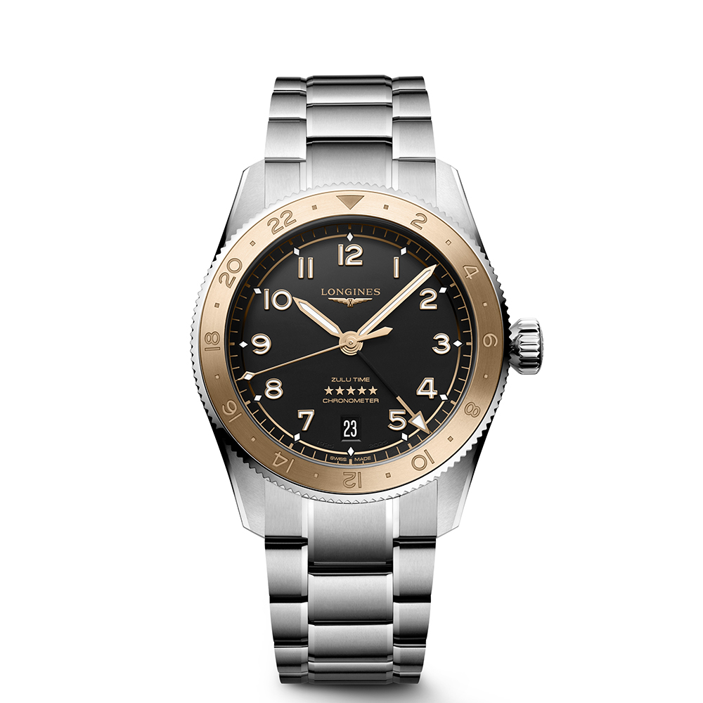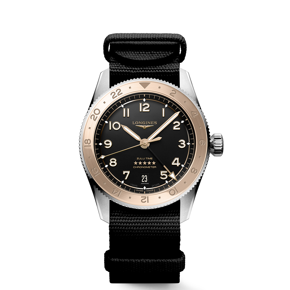 Il Longines Spirit Zulu Time simboleggia la maestria centenaria del marchio negli orologi con più fusi orari. Le sue origini e il suo nome derivano dal primo orologio da polso Longines con due fusi orari, realizzato nel 1925, che presentava la bandiera Zulu sul quadrante (dove Zulu si riferisce alla lettera “Z” che indica il tempo universale per gli aviatori). Esteticamente, il Longines Spirit Zulu Time si distingue per l’esecuzione meticolosa e la particolare cura dei dettagli. Presenta una lunetta girevole bidirezionale con inserto in ceramica. Ogni modello è alimentato da un esclusivo calibro Longines, dotato di un bilanciere-spirale in silicio, resistente ai campi magnetici e certificato come cronometro COSC.